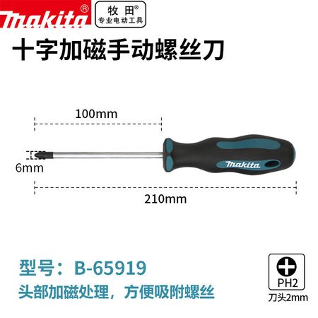 Makita B-65919 Намагниченная крестовая отвертка PH2 Конусная отвертка с измененными размерами 100 мм Диаметр 6 мм