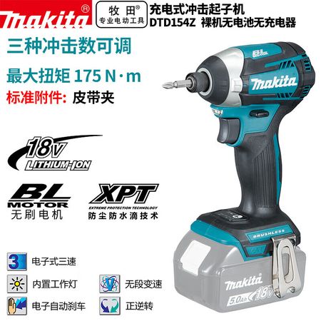 Makita DTD154Z бесщеточный литиевый аккумулятор, аккумуляторная ударная отвертка 18 В, голый металл, без зарядного устройства, без аккумулятора