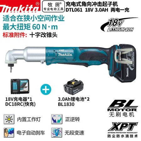 Makita DTL061 аккумуляторная угловая ударная отвертка электрическая 18V3.0Ah два аккумулятора и одно зарядное устройство