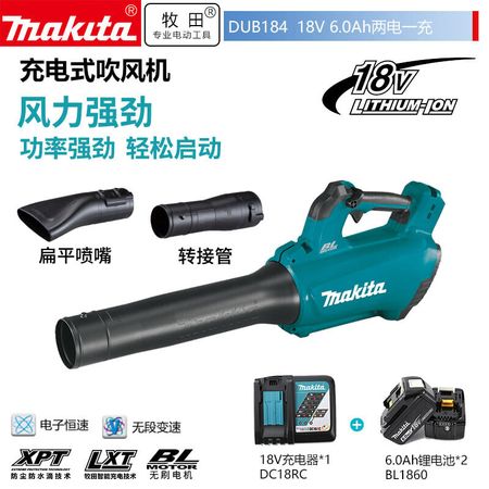 Makita DUB184 перезаряжаемый фен для волос, мощный промышленный небольшой сажеобдувочный аппарат, 18 В, 6,0 Ач, с двумя батареями, быстрая зарядка