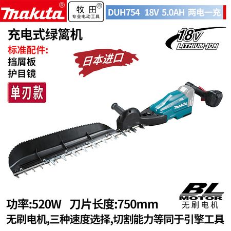 Makita DUH754 бесщеточный аккумуляторный триммер для живой изгороди, электрическая машина для сбора чая, 750 мм, с одним лезвием, 18 В, 5,0 Ач, два аккумулятора и одно зарядное устройство