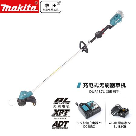 Makita DUR187L литиевая аккумуляторная газонокосилка, газонокосилка, ручка возврата газонокосилки, 18V6.0Ah, две батареи