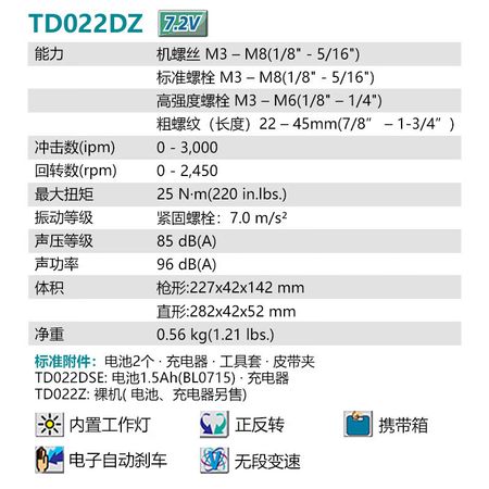Makita TD022DZ перезаряжаемая ударная отвертка с литиевой батареей, складная металлическая модель 7,2 В