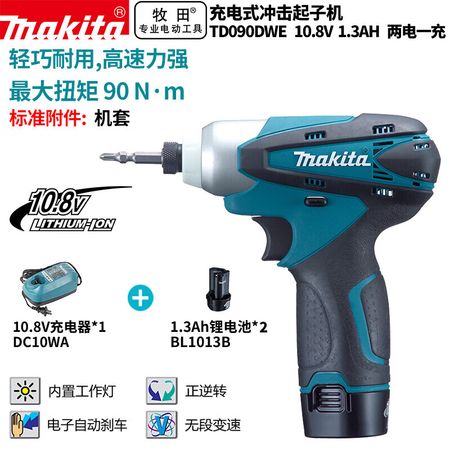 Makita TD090DWE аккумуляторная ударная отвертка электрическая отвертка компактная 10,8В1,3Ач два аккумулятора