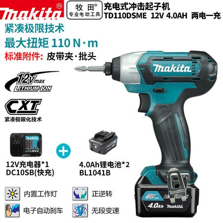 Makita TD110DSME литиевая аккумуляторная аккумуляторная ударная дрель-пистолетная дрель 12V4.0Ah, две батареи и одна зарядка