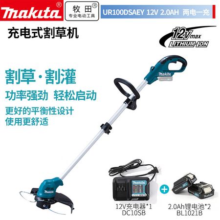 Makita UR100DSAEY литиевая аккумуляторная газонокосилка, электрическая газонокосилка 12V2.0AH, две батареи и одна зарядка
