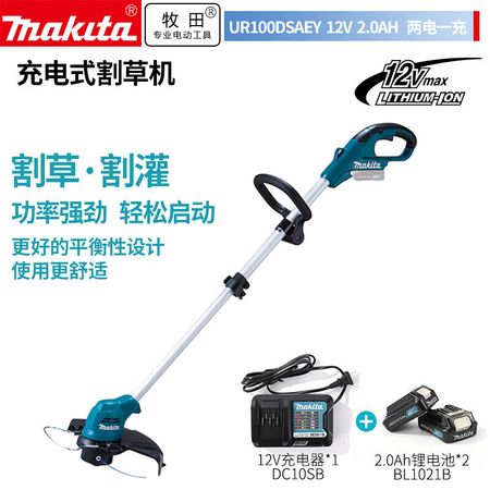 MakitaUR100DSAEY перезаряжаемая газонокосилка с литиевой батареей, электрическая газонокосилка 12V2.0AH, две батареи и одна зарядка
