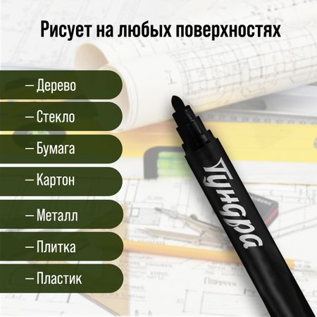 Маркер строительный ТУНДРА, перманентный, черный, ширина линии 3 мм. <em> Открой новые горизонты для творчества и активности!</em> <strong> Перманентный маркер для строительства</strong> – это незаменимый инструмент для всех, кто ценит качество и универсальность. Этот прочный черный маркер идеально подходит для любых поверхностей, обеспечивая четкие и долговечные линии. <ul> <li> <strong> Универсальная креативность:</strong> Независимо от того, работаете ли вы с деревом, металлом или пластиком, наш маркер станет вашим надежным помощником. Он подходит для профессионального использования и домашних проектов, так что ваш творческий потенциал ничем не ограничен.</li> <li> <strong> Тонкие линии, максимальная точность:</strong> Ширина линии в 3 мм позволяет вам аккуратно и четко выполнять разметку. Это идеальный выбор как для крупных проектов, так и для детализации мелких деталей.</li> <li> <strong> Долговечность и стойкость:</strong> Забудьте о необходимости повторного нанесения. Чернила перманентного маркера сохраняют насыщенный цвет даже в суровых условиях, будь то влага, высокие температуры или механическое воздействие.</li> <li> <strong> Надежный и безопасный:</strong> Маркер изготовлен из качественных материалов, безопасных для здоровья. Это обеспечивает комфорт в использовании без беспокойства о токсичности.</li> </ul> <strong> Ваш идеальный помощник:</strong> Перманентный строительный маркер – это не просто инструмент, а ключ к успешной работе и реализации самых смелых идей. Он станет вашим надежным спутником в любых проектах, от ремонта квартиры до сложных архитектурных задач. Выберите надежность и эффективность – выберите качество!