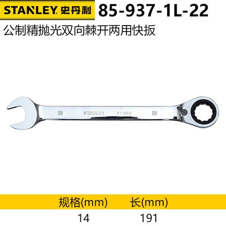 Метрическая прецизионная полированная двусторонняя трещотка Stanley, открытый быстродействующий ключ двойного назначения, гаечный ключ сливового цвета, 8 мм 85-937-1L-22