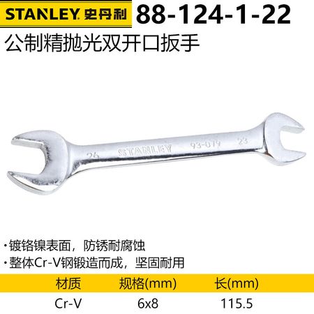 Метрический прецизионный полированный двойной рожковый ключ Stanley, универсальный гаечный ключ 6×8 мм 88-124-1-22