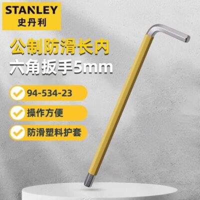 Метрический противоскользящий длинный внутренний шестигранный ключ Stanley Внутренний шестигранный ключ с плоской головкой L-типа, 5 мм 94-534-23