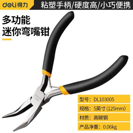 Мини-плоскогубцы с пластиковой ручкой Deli, плоскогубцы из высокоуглеродистой стали, электронные плоскогубцы, плоскогубцы с изогнутыми носами, 5 дюймов, DL103005
