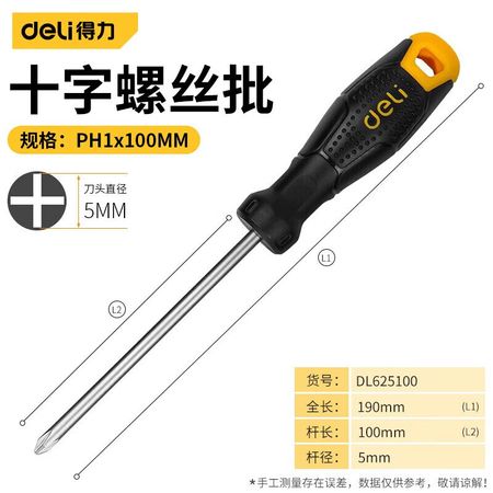 Многофункциональная отвертка Deli Phillips с сильным магнитным противоскользящим покрытием PH1x100 мм DL625100