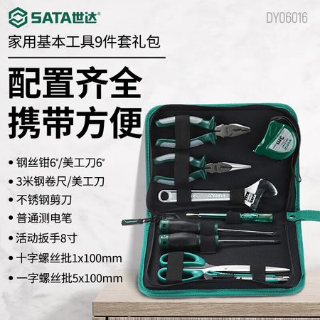 Многофункциональный бытовой универсальный набор инструментов для ремонта SATA DY06016, базовые бытовые инструменты, подарочная упаковка из 9 предметов
