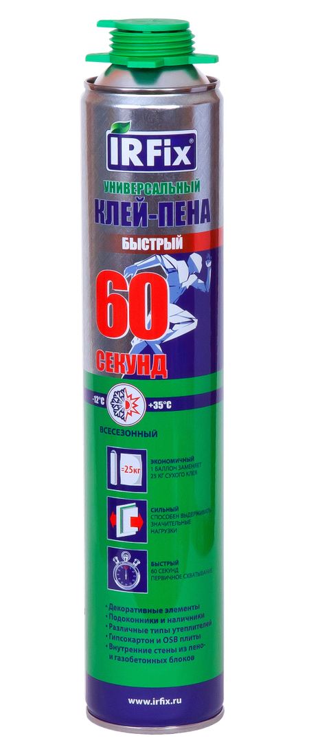 Главная » Строительство и ремонт Монтажные пены под пистолет IRFIX Клей-пена универсальный IRFIX 60 СЕКУНД 800 мл Просмотров 9 Широкий ассортимент по выгодным ценам. Регулярные акции. Программа лояльности IRFIX