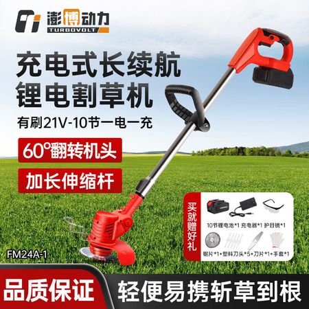 Мощная газонокосилка Pengbo, перезаряжаемая литиевая батарея, бытовая ручная газонокосилка, 2,4 Ач, 1 аккумулятор, 1 зарядка, FM24A-1 Turbovolt