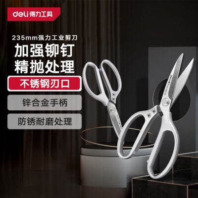 Мощные ножницы из нержавеющей стали Deli, 235 мм, офисные, кухонные, многофункциональные, бытовые, промышленные, из алюминиевого сплава, DL358235
