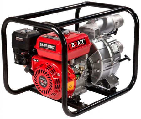 Бензиновая мотопомпа BRAIT BR-WP-30(7) предназначена для перекачивания чистой и слабозагрязненной пресной воды.Насос может применяться для полива, строительства, осушения водоемов, бассейнов, подвалов, колодцев, складских помещений и других затопленный объектов.Рама обеспечивает устойчивость мотопомпы как при использовании, так и при транспортировке.Преимущества:4-тактный бензиновый 1-цилиндровый двигатель.Удобная конструкция.Широкая горловина топливного бака.Широкое основание — устойчивость.Характеристики:Тип: мотопомпаНазначение: для перекачивания водыМощность, Вт: 5151Высота подъема, м: 25Глубина всасывания, м: 7Датчик масла: естьДиаметр входного отверстия, мм: 80Диаметр выходного отверстия, мм: 80Мощность, л.с.: 7Производительность, мsup3;/ч: 60Тип: грязная водаТип двигателя: 4-тактный бензиновый 1-цилиндровыйМатериал: металлЦвет: черныйГабариты, см: 38×42.5×50Вес, кг: 22Комплектация:МотопомпаКольцо зажимное — 2 шт.Прокладка уплотнительная — 2 шт.Патрубок соединительный — 2 шт.Фильтр — 1 шт.Хомут — 3 шт.Комплект инструментаИнструкция по эксплуатации