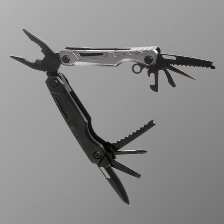 Главная » Строительство и ремонт Мультитул 11в1 с плоскогубцами, черно-серый Просмотров 11 Мультитул 11в1 с плоскогубцами, черно-серый. Функции мультитула 11в1: Плоскогубцы; Кусачки; Нож (6 см); Пилка; Отвертка — 3 шт; Открывашка 2 шт; Пила; Шило. No brand