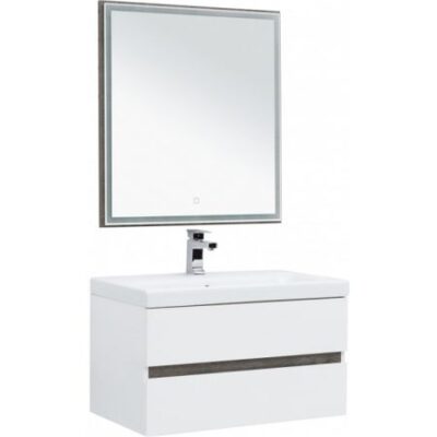 Тумба Aquanet Беркли 80 белый глянец/дуб рошелье (254290)