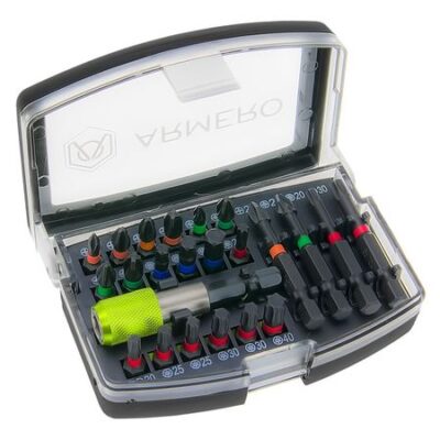 Главная » Строительство и ремонт набор бит ARMERO с магнитным адаптером 23шт Просмотров 13 Количество предметов: 23 шт Состав набора: биты 25мм: крест PH0, PH2x2шт, PH3, PZ0, PZ2х2шт, PZ3 шестигранник H4, H5, H6 звезда T20х2шт, T25х2шт, T30х2шт, T40 биты 50мм: Крест PH2, PZ2 звезда T20, T30 магнитный быстросменный адаптер ARMERO