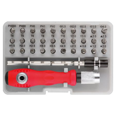 Количество бит: 30 шт. Состав набора: PH000, PH00, PH0, PH1, PH2; SL1.5, SL2.0, SL2.5, SL3.0, SL4.0; T4, T5, T6, T8, T9, T10;Y-тип: Y2.0, Y3.0; треугольник 2.0, 2.3; H1.5, H2.0, H2.5, H3.0, H3.5, H4.0; U-тип: U2.3; пятилучевой Torx: 0.8, 1.2, 2.0; Держатель: пластиковая ручка с металлическим фиксатором. Диэлектрические свойства: нет