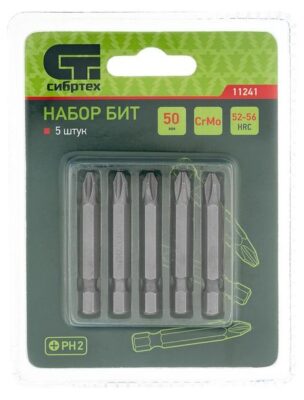 Набор бит Сибртех 11241 включает 5 крестообразных насадок PH2 x 50 мм из стали CrMo, с шестигранным присоединительным хвостовиком. Они используются в качестве сменной оснастки для шуруповертов, реверсивных и электрических отверток. Биты PH2 подходят для монтажа и демонтажа винтов и саморезов соответствующего типоразмера во время сборки мебели, проведения строительных, монтажных и ремонтных работ. Преимущества Долговечность биты изготовлены из износостойкой хромомолибденовой стали твердостью 52-56 HRC. Длина 50 мм работать удобно даже в труднодоступных местах. Высокое качество насадки прошли пескоструйную обработку. Удобная комплектация в наборе 5 бит, которых хватит надолго.