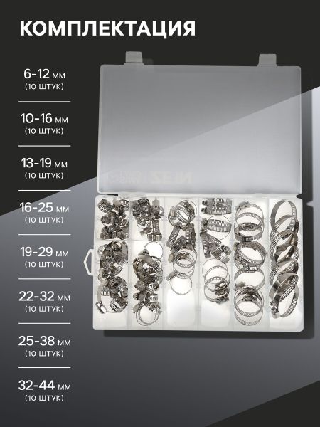 Главная » Строительство и ремонт Набор червячных хомутов zein engr, сквозная просечка, от 6 до 44 мм, нерж. сталь, 80 шт. Просмотров 6 Набор червячных хомутов ZEIN engr, сквозная просечка, от 6 до 44 мм, нерж. сталь, 80 шт.. ZEIN