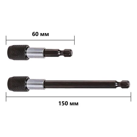 Количество предметов: 2 шт Состав набора: держатели для бит 60мм, 150мм Тип хвостовика: 1/4″ Намагниченный наконечник: нет Дополнительно: быстросменный механизм