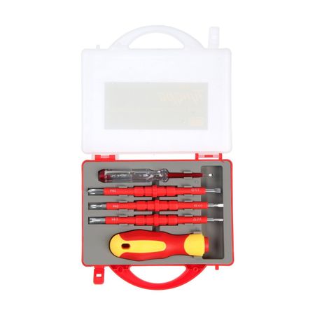 Набор диэлектрических отверток ТУНДРА, CrV, двухсторонние биты 3 шт., до 1000 В. Набор диэлектрических отверток от марки «ТУНДРА» предназначен для крепежных работ под напряжением до 1000 В. Рабочая часть отверток выполнена из прочной CrV стали. Рукоятки оснащены мягкими прорезиненными вставками.