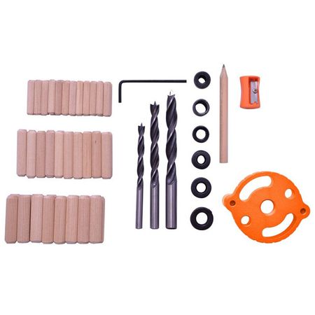 Количество предметов: 73шт. Угол сверления: 90 град. Состав набора: кондуктор для сверления 1шт; сверло по дереву 3шт: 6, 8, 10 мм; кольцо ограничительное 3шт: 6, 8, 10 мм; маркер центровой 6шт: 6мм 2шт, 8мм 2шт и 10мм 2шт; шкант мебельный 6мм 24шт, 8мм 20шт, 10мм 16шт; ключ шестигранный 2,5мм 1шт.