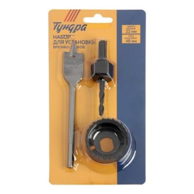 Набор для установки врезных замков ТУНДРА, сверло перовое 22 мм, пила кольцевая 48 мм. Набор ТУНДРА поможет при установке врезных замков. В нем есть все необходимые инструменты: шнековое сверло, кольцевая пила и имбусовый ключ. Шнековое сверло диаметром 22 мм имеет направляющее острие, которое создает точные сквозные и глухие отверстия. Такая оснастка отлично подходит как для мягких, так и для твердых пород дерева. Кольцевая пила диаметром 48 мм работает вместе с направляющим спиралевидным сверлом. С помощью такой конструкции вы сделаете ровные круглые отверстия.