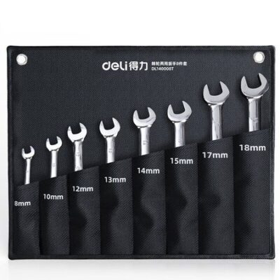 Набор двусторонних ключей с храповым механизмом Deli, рожковый ключ двойного назначения с цветком сливы, многофункциональный универсальный ключ двойного назначения с храповым механизмом, набор из 8 предметов DL140008T