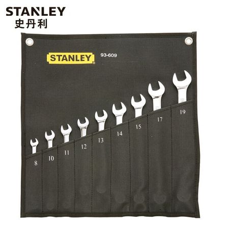 Набор гаечных ключей Stanley, 9 предметов, метрический, тонко полированный, открытый, длинный ключ двойного назначения с цветком сливы 93-609-22