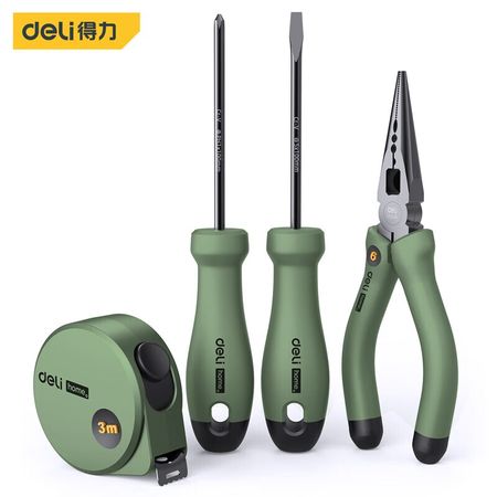 Набор инструментов Deli Home Series, набор из 4 предметов (зеленый и черный), бытовые плоскогубцы, стальная рулетка, набор отверток, немецкий дизайн HT0004L