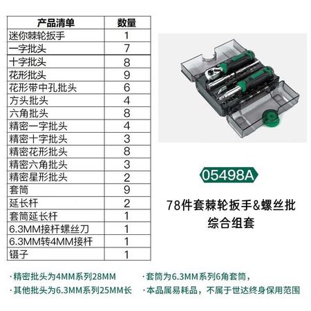 Набор инструментов SATA Набор бытовых отверток Малый размер Крестообразный ремонт Демонтажная машина Набор ключей с храповым механизмом, 78 предметов Набор отверток с храповым механизмом 05498A