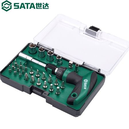 Набор инструментов SATA Набор бытовых отверток Малый размер Крестообразный ремонт Демонтажная машина Набор насадок для ключей с трещоткой, 29 предметов Набор насадок для отверток с храповым механизмом 05493