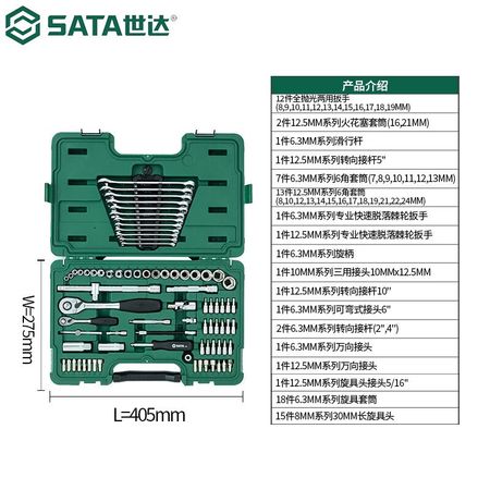 Набор инструментов SATA серии 6,3 мм x 12,5 мм, набор для ремонта и обслуживания автомобилей, механический ремонт, полный набор ключей с храповым механизмом (09518), 80 шт., набор для ремонта автомобилей 6,3 x 12,5 мм