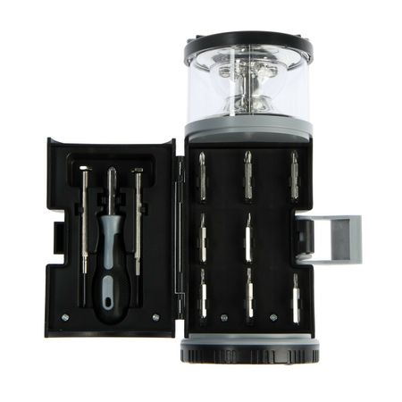 Набор инструментов ТУНДРА, подарочный пластиковый кейс «Фонарь», 11 предметов. Набор инструментов «ТУНДРА» Фонарь — предназначен для монтажных, крепежных и других работ. Набор включает в себя 11 предметов. В наборе представлены насадки-биты с удобным держателем, а также отвертки для точных работ. Встроенный фонарик позволяет осуществлять действия в темноте. Питание фонарика происходит от батареек (в комплекте не предоставляются). Набор обладает компактными размерами, что позволяет его хранить как дома, так и в автомобиле. Инструмент и оснастка изготовлены из высококачественного металла, что увеличивает их износостойкость. Удобная рукоятка надежно лежит в руке и не выскальзывает во время работы. Отвертка очень удобна в условиях ограниченного пространства.