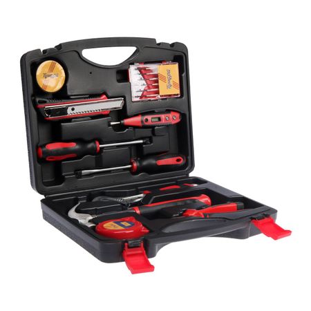 Набор инструментов в кейсе ТУНДРА, универсальный, 15 предметов. Универсальные наборы инструментов ТУНДРА подойдут для решения различных бытовых задач. Для удобства хранения и транспортировки инструменты укомплектованы в пластиковый кейс. Данный набор также доступен в эксклюзивных подарочных упаковках <li> к 23 февраля:</li> <b> 9305224</b> <li> к Новому году:</li> <b> 9305210</b>
