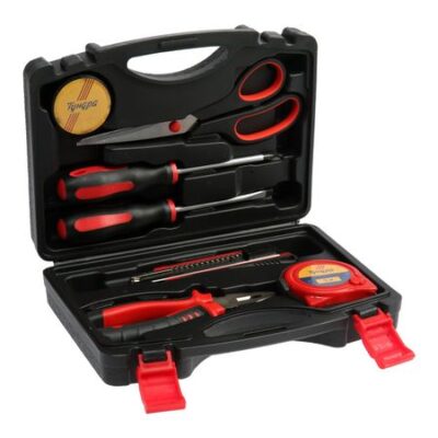 Набор инструментов в кейсе ТУНДРА, универсальный, 7 предметов. Универсальные наборы инструментов ТУНДРА подойдут для решения различных бытовых задач. Для удобства хранения и транспортировки инструменты укомплектованы в пластиковый кейс. Данный набор также доступен в эксклюзивных подарочных упаковках <li> к 23 февраля:</li> <b> 9305220</b> <li> к Новому году:</li> <b> 9305206</b>