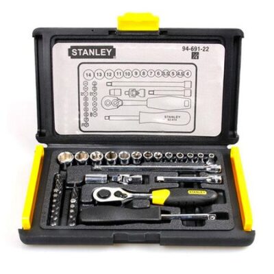 Набор из 35 предметов Stanley, метрический набор инструментов серии 6,3 мм, многофункциональный бытовой ручной ящик для инструментов, комбинированный набор инструментов для аппаратного обеспечения 94-691