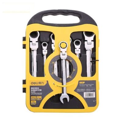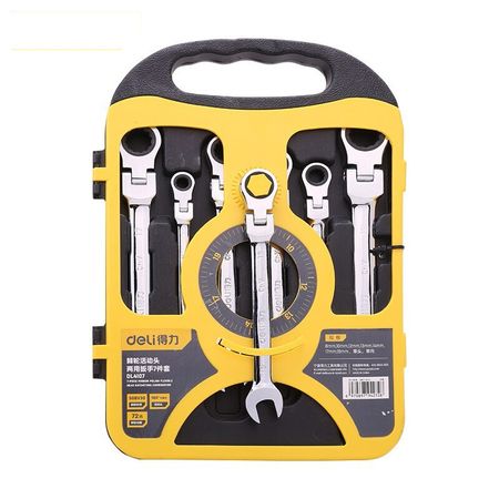 Набор из 7 предметов Deli, зеркало с трещоткой, живая головка, быстрый ключ двойного назначения, открывающееся зеркало, цвет сливы, двойной автоматический быстрый ключ двойного назначения, 8-19 мм DL4107