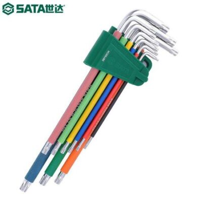 Набор из 9 предметов SATA, комбинация специального длинного шестигранного ключа со средним отверстием, внутренний шестигранник в форме цветка, серия Rainbow, внутренний шестигранник в форме цветка со средним отверстием 09702CH (T10-T50mm) на складе