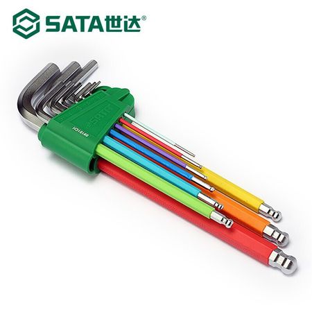 Набор из 9 предметов SATA, комбинация, специальный длинный шестигранный ключ, шаровая головка, шестигранная отвертка со сферической головкой, серия Rainbow, шестигранная шаровая головка 09101CH (1,5-10 мм), в наличии