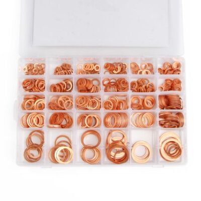 Набор медных прокладок, 30 размеров, 568 шт.. Набор предназначен для уплотнения резьбовых соединений различных элементов. Прокладка делает соединение адаптера с насадками и соединителя со шлангом более надежным и герметичным. Набор медных прокладок предоставляется в компактном кейсе из пластика, который обладает отсеками под каждый размер и нумерацией размеров на крышке. Достаточно купить такой набор, чтобы надолго обеспечить дом нужными расходниками. Набор можно использовать в автосервисе и на станции технического обслуживания при ремонте системы кондиционирования автомобиля, а также во время других ремонтно-монтажных работ, например, сантехнических (для смесителей, фитингов и пр.). В комплекте представлены уплотнительные прокладки самых распространенных размеров.