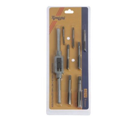 Набор метчиков ТУНДРА, М3 — М12 + метчикодержатель, 8 предметов. Метчики из набора ТУНДРА используются для нарезания внутренней резьбы М3-М12. Они имеют наиболее востребованный шаг и используются с метчикодержателем, который также входит в комплект. Размеры метчиков: М3, М4, М5, М6, М8, М10, М12.
