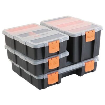 Главная » Строительство и ремонт набор органайзеров KENDO 4 предмета Просмотров 4 Количество предметов: 4 шт Состав набора: органайзер 220х155х60 мм — 2 шт; 220х155х120 мм — 1 шт; 220х290х60 мм — 1 шт Материал: полипропилен Цвет: черный, оранжевый KENDO