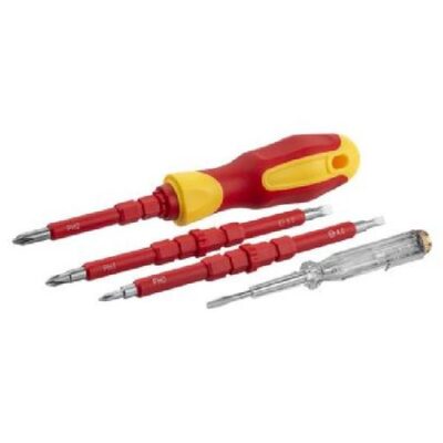 Состав набора: рукоятка, отвертка-индикатор , двусторонние стержни Магнитный наконечник: да Диэлетрические свойства : да Материал ручки: двухкомпонентный пластик