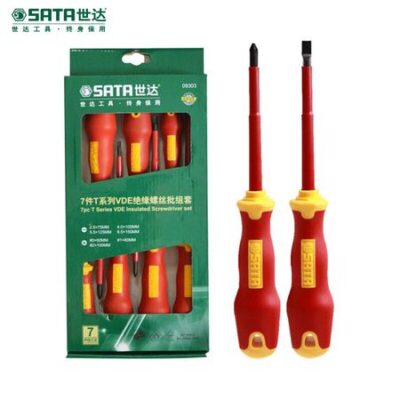 Набор отверток с изоляцией VDE, серия SATA, 7 предметов. Т-образная отвертка для электрика 09303 на складе.